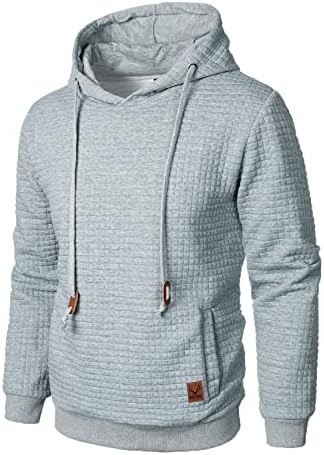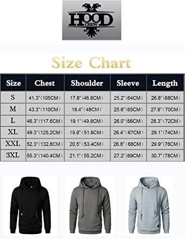 HOOD CREW Men’s Pure Color Casual Long Sleeved Plaid Hooded Pullover Sweatshirt