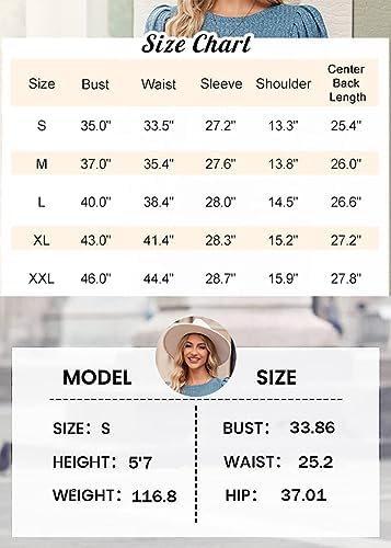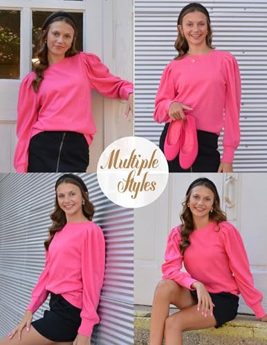 Hotouch Women’s Knit Blouse Soft Puff Long Sleeve Shirt Tops Lightweight Round Neck Tunic S-XXL