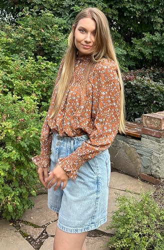 Hotouch Womens Long Sleeve Tops Boho Floral Printed Blouses Casual V Neck Pleated Drawstring Shirts