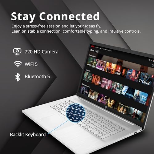 HP 17.3″ IPS FHD Laptop, Intel Core i5-1235U Processor, 16GB RAM, 1TB PCIe SSD, Backlit Keyboard, Intel Iris Xe Graphics, Wi-Fi, Bluetooth, HDMI, Win 11 Pro, Silver, 32GB Hotface USB Card (Renewed)