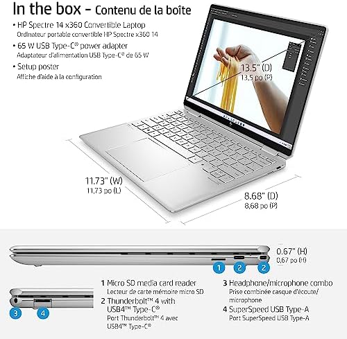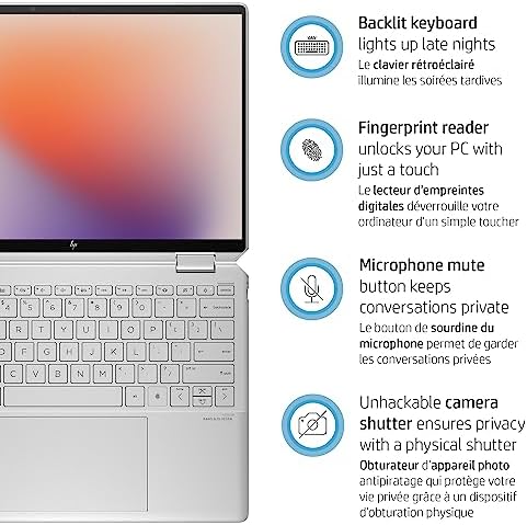 HP Spectre x360 14 Convertible Laptop, Intel Evo Powered by 12th Gen Intel Core i5-1235U, 16 GB RAM, 512 GB SSD, 13.5-Inch WUXGA+ Touch Display, Windows 11 Home, Silver, 14-ef0010ca, 2022 (378W6UA)