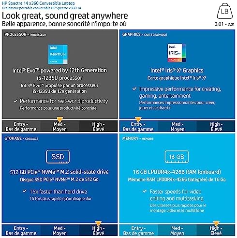 This HP Spectre x360 touchscreen convertible laptop delivers audio-visual excellence for great video calls wherever you go. This Intel Evo laptop is powered by a 12th Generation Intel Core processor for superior multitasking and has a 3:2 aspect ratio so you can see more and scroll less. Video calls on the WUXGA+ screen look incredible, and your meetings will go smoothly with clear sound and audio for all parties. Feel free to take your HP Spectre x360 13-inch laptop on the go; Corning Gorilla Glass NBT protects the display from daily wear and tear. Enjoy faster speeds, improved performance, greater capacity and lower latencies than earlier iterations with Wi-Fi 6E and Bluetooth combo technology. At the end of a long day, relax with color accurate streaming, thanks to Delta E<2 color accuracy and color space presets made for web browsing, editing photos or watching videos.