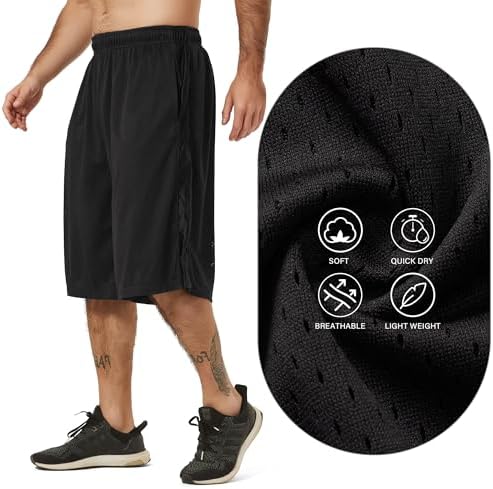 HQUEC Men’s 12″ Athletic Shorts Long Basketball Workout Shorts Below Knee Loose-Fit with Pockets