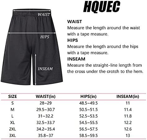 HQUEC Men’s Long Athletic Quick Dry Shorts for Basketball, Running and Gym.