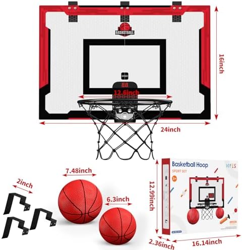 HYES 24″ x 16″ Large Basketball Hoop Indoor for Adults, Over The Door Basketball Hoop with Sturdy Backboard/Electronic Scoreboard, Basketball Toys Gifts Ideas for Man Kids Teens Boys Girls