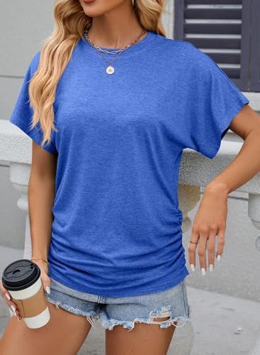 isermeo T Shirts for Womens Summer Crewneck Dolman Tops with Side Shirring Short Sleeve Loose Fit Tee S-XXL