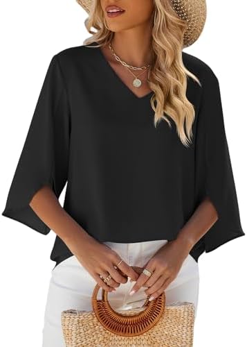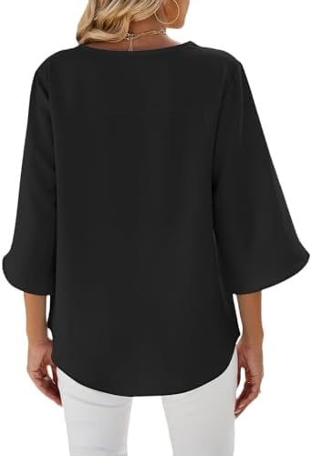 isermeo Womens 2024 Casual V-Neck Loose Tunic Top 3/4 Sleeve Chiffon Blouse Shirt Summer Tops S-XXL