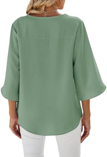 isermeo Womens 2024 Casual V-Neck Loose Tunic Top 3/4 Sleeve Chiffon Blouse Shirt Summer Tops S-XXL