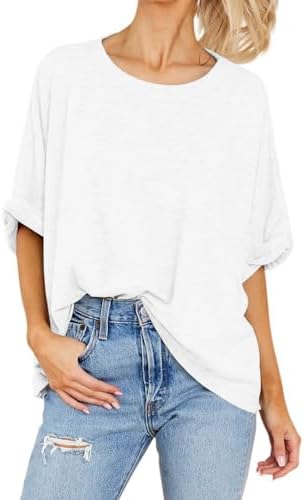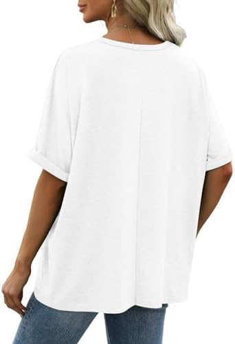 isermeo Women’s Oversized Tunic Length Tops Rolled Short Sleeves Summer Tops Casual Crewneck T Shirt S-XXL