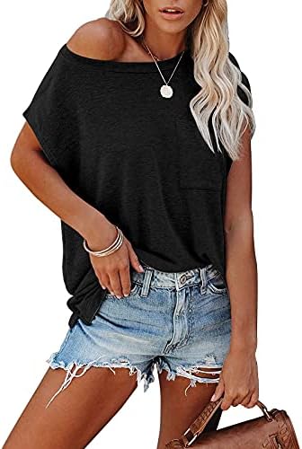 isermeo Womens Summer T Shirts Loose Fit Cap Sleeve Side Split Summer Tops with Pocket S-XXL
