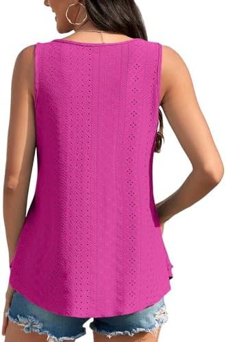isermeo Womens Tank Tops Eyelet Embroidery Scoop Neck Loose Casual Sleeveless Flowy Summer Shirts Trendy S-2XL