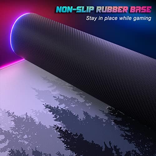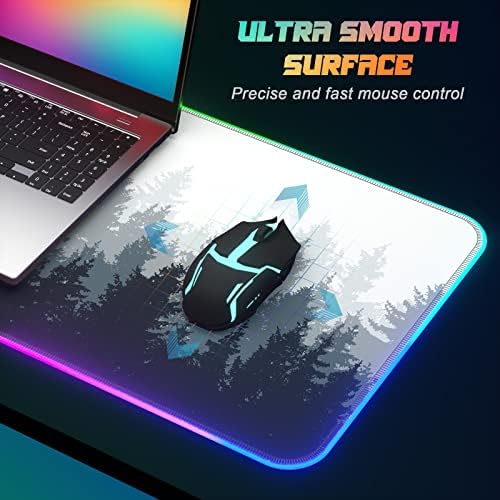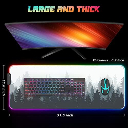 ITNRSIIET RGB Gaming Mouse Pad, Full Desk XL Extended Large Gaming Mousepad, 12 Lighting Modes, 30% Thicker, Big LED Desk Mat for Keyboard Computer Men Gamer Esport Pros, 32″ x 12″, White Black Forest