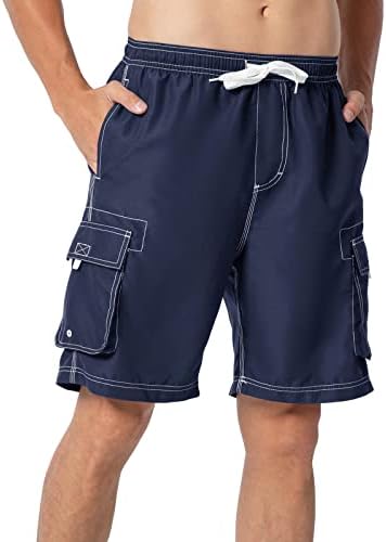 JHMORP Men’s Swim Shorts Trunks Dry Fit Cargo Bathing Suits Beach Board Shorts With Mesh Liner 4 Pockets