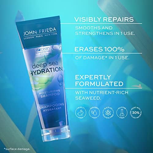 Immerse hair in a sea of moisture. Infused with nutrient-rich seaweed, this gentle SLS/SLES sulfate-free shampoo and silicone-free conditioner instantly detangles and replenishes hair with a rush of nourishing moisture. For silky, smooth, hydrated hair that you’ll want to run your fingers through. Transform damaged, dry hair into hydrated, silky-soft hair that feels as good as it looks. Infused with nutrient-rich seaweed, Deep Sea Hydration Moisturising Shampoo, along with the Deep Sea Hydration Conditioner and Mask, erases 100%* of damage in just one use. Through our partnership with 4Ocean, the John Frieda Deep Sea Hydration collection will help the ocean plastic crisis. For every pound of plastic used in the Deep Sea Hydration packaging, 4Ocean will clean up at least the same weight in ocean plastic, helping to reduce overall plastic waste from our oceans. *damage to surface smoothness