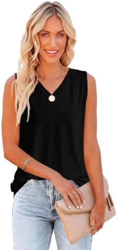 JURDUIR Tank Tops for Women Summer V Neck Sleeveless Casual Loose Tshirts Spring Tunic Blouse Clothes