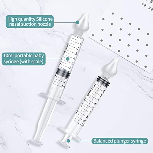 【SAFETY AND CLEAN】 Baby nasal syringe use high quality silicone nasal aspirator and environmentally friendly syringe, non-toxic and tasteless, portable 10ml, easy to use and safe for babies.