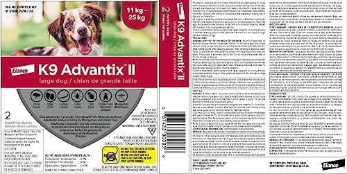 K9 Advantix II Flea and TickTreatment for Large Dogs weighing 11 kg to 25 kg (24 lbs. to 55 lbs.) – 2 pack