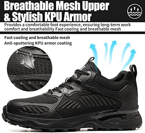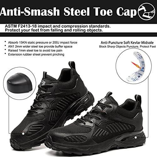 KELODON Safety Shoes for Men Safety Boots Non Slip On Resistant Steel Toe Shoes Indestructible Shoes Work Shoes