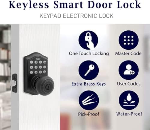 Keyless Entry Door Lock, Electronic Keypad Deadbolt Lock with 50 Codes, Easy to Install, Electronic Deadbolt with 1-Touch Motorized Locking, Great for Home, Bedroom, Garage & Office