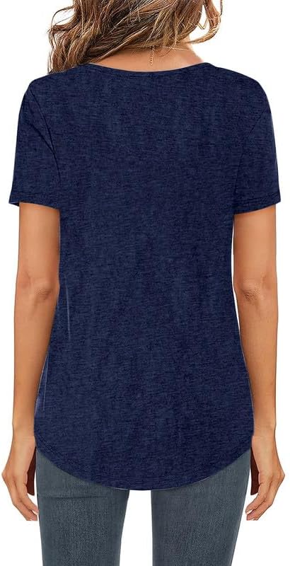 KISSMODA Womens T Shirts V Neck Summer Short Sleeve with Curved Hem Casual Tops Tees
