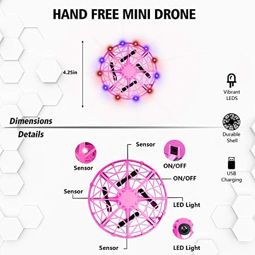 [Sensitive Flying Drone for Kids]: The UFO drone has 5 updated infrared motion sensors, can detect any obstacles around it to prevent hitting and damaging things. You can control it by hand,keeping your kids hours of fun.