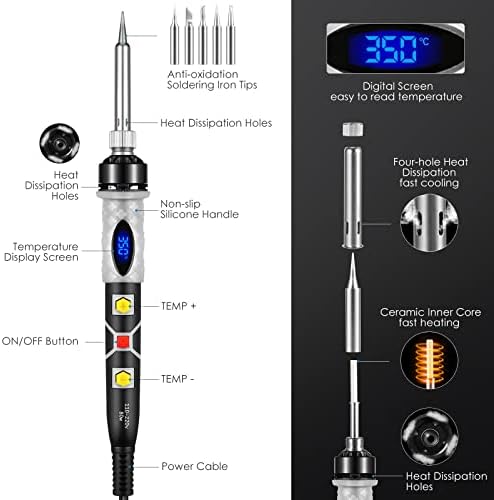 【Excellent Soldering Iron with LCD Screen】: With temperature control buttons and LCD temperature display, you can adjust the temperature from 200℃ to 450℃, read the temperature clearly, so it is less likely to over heat a circuit board. LCD display and temperature control switch makes job even easier and and professional.