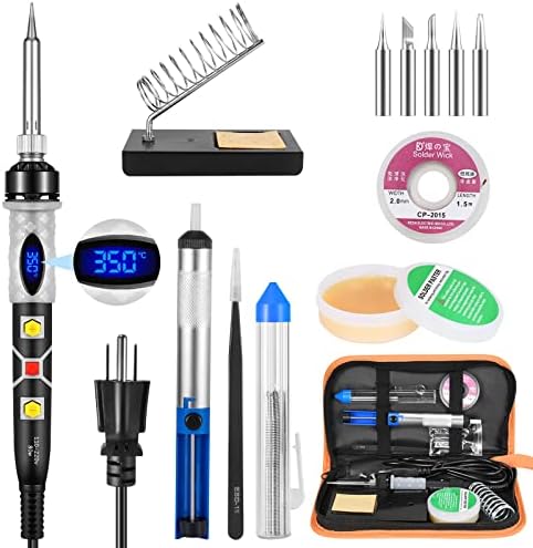 KLARYTYMA Soldering Iron Kit, 80W Digital Soldering Iron with 5pcs Tips, Desoldering Pump/Wick, Solder/Flux, Tweezers, Stand, Leather Storage Bag for Repairing Electronics, DIY Project