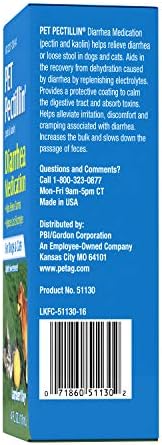 Lambert Kay Pet Pectillin Dog and Cat Diarrhea Medication, 4 Ounces is useful as an aid in the treatment of diarrhea in pets. It contains pectin and Kaolin. Pectin provides a protective coating to irritated gastrointestinal membranes. It is also a detoxifying agent against the bacterial toxins which cause inflammation of the gastrointestinal membranes and diarrhea. Kaolin, an absorbent, increases the bulk and slows down the passage of feces while promoting excretion of toxins within the gastrointestinal tract. Improvement should be noticeable in 2 to 3 days. Proudly Made In the USA.