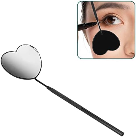 Lash Mirror Eyelash Extension Mirror Eyelash Makeup Mirror Heart Shaped Lash Mirror Professional Portable Stainless Steel Makeup Eyelash Mirror for Lash Extension (Black)