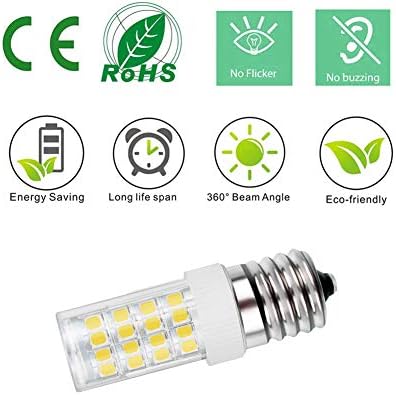 E17 intermediate screw base led light bulb used for microwave light bulb, range hood light bulb, refrigerator light bulb, over hood, over stove light bulb replacement, equivalent incandescent bulb: 8206232A,8206232,1890433,AP4512653,WB36X10003,WB25X10030, 6912W1Z004B.
