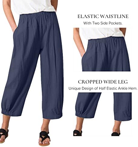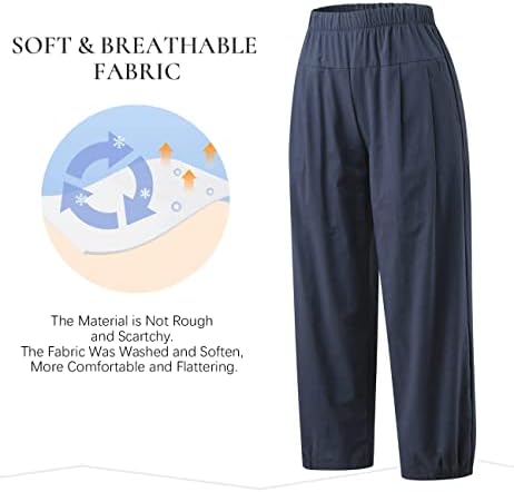 Les umes Women’s Cotton Pants Casual Capri Pants Elastic Waist Solid Trouser Loose Baggy Harem Pants with Pockets Summer
