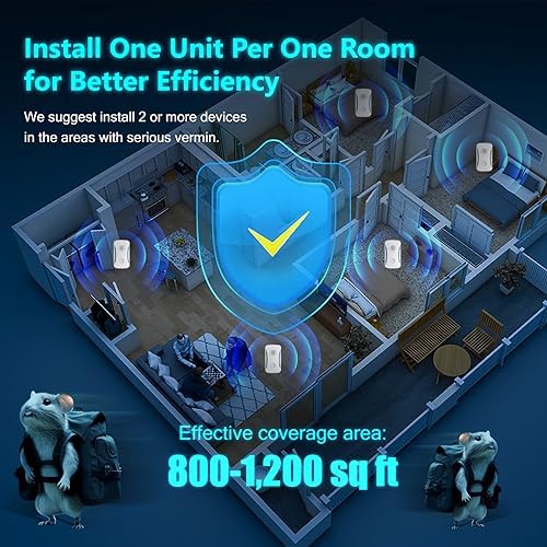 360°PROECT YOUR HOME WITH NO DEAD ZONE – The effective coverage of each pest control is up to 80 to 120 square meters. We recommend you to install one for each room because the ultrasound cannot penetrate walls and solid objects. But for areas with serious Vermin, we suggest install 2 or more devices for other room. They aren’t effective for other rooms if you install device at one room. It’s widely used in homes, warehouses, offices, restaurants, supermarkets, hospitals, granary, etc.