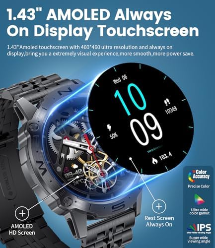 ✨【AMOLED Full HD Display】The military smart watches for men is equipped with a cutting-edge AMOLED display boasting a resolution of up to 466*466 pixels and a peak brightness of 600 NITS. This allows you to effortlessly view the screen content even under direct sunlight, without worrying about glare issues, delivering a richer color and clearer visual experience for you.