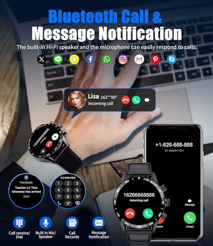 📞【Smartwatch with Bluetooth Calls & AI Voice Assistant】Equipped with an integrated microphone and hi-fi speaker, this smart watch allows you to make/receive/decline calls, view calls record, add up to 100 contacts, dial pad. Bluetooth 5.0 provides support to ensure your stable calls. Additionally, it features the latest version of a voice assistant, enabling communication with the watch to activate the voice assistant on the phone.