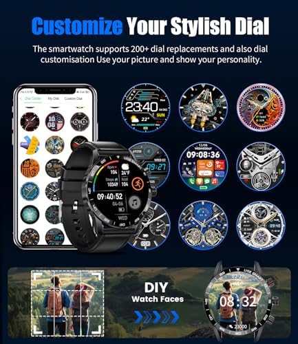 Smart watch for iPhone or Android Phone equipped with 8 dials, dial store has 200+ free dials for you to choose from, you can also change your favorite picture as a watch face with one click.