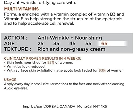 L’Oreal Paris Anti-Aging Face Cream 65+, Day & Night Skincare, Wrinkle Expert, With Multi-Vitamins to Reduce the Look of Deep Wrinkles, 50mL