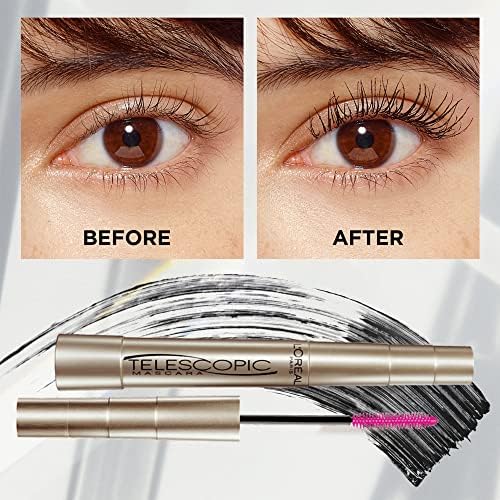 Box Contains: L’Oréal Paris Telescopic Mascara, Eyelash Lengthening Mascara, Unique Non-Clumping Formula Delivering Intense Length, For Sensitive Eyes, Color: Blackest Black, Volume: 8ml