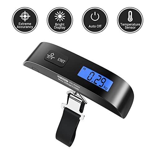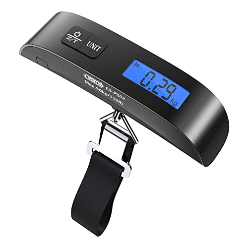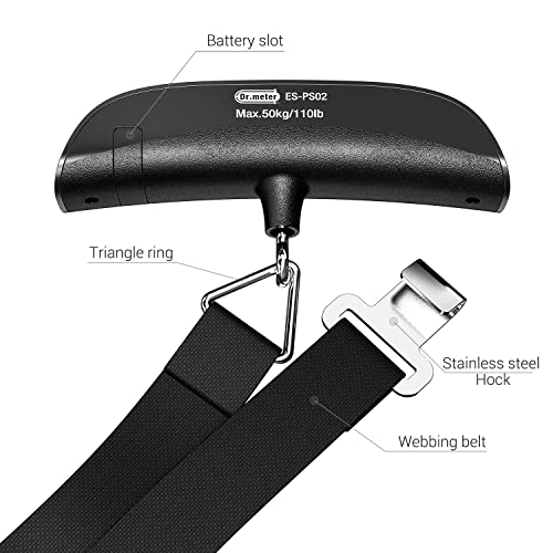 Luggage Scale: 110lb/50kg Backlight LCD Display Portable Handheld Electronic Scale – Dr.meter Balance Digital Postal Luggage Hanging Scale with Rubber Paint Handle,Temperature Sensor, Battery Included