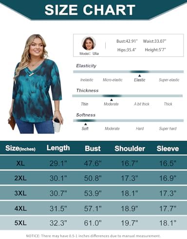 Luranee Womens Plus Size Tops 3/4 Sleeve V Neck T Shirt Loose Fit Casual Blouse Flowy Tunics 1XL-5XL