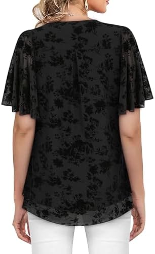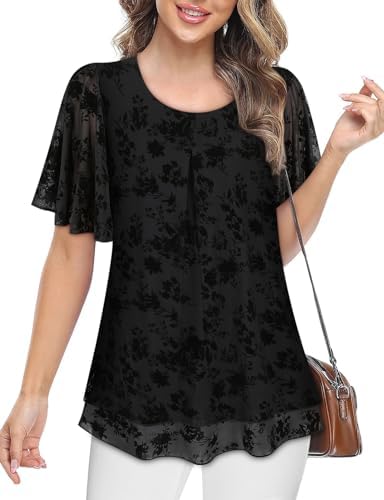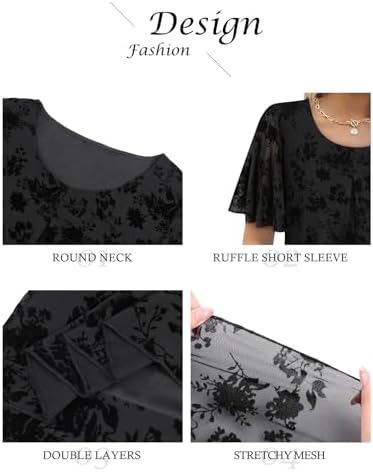 Luranee Women’s Ruffle Short Sleeve Mesh Blouses Dressy Double-Layered Shirt Summer Casual Tunic Tops