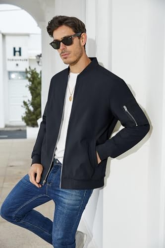 MAGCOMSEN Men’s Bomber Jacket with Pockets Lightweight Softshell Casual Outwear Windbreaker
