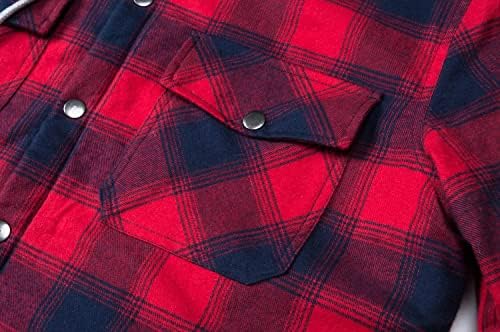 MAGCOMSEN Men’s Flannel Shirt Jacket with Hood Long Sleeve Quilted Lined Plaid Coat Button Down Thick Hoodie Outwear Winter