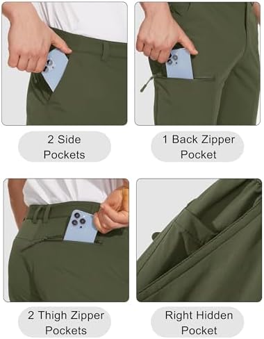 Material: 90% Nylon and 10% Spandex Material, Lightweight, Ripstop, Scratch-Resistant and Wear-ResistingQuick Dry: This Hiking Pants Features with Stretch Quick Dry Fabrics, Wicking Moisture and Keep You Cool and DryElastic Waist: Side Elastic Waistband and Comes with a Belt Loop, Allow a Comfortable and FitPerformance 6 Pockets: 2 Hand Slash Pockets with 1 Hiden Pocket, 2 Big Zipper Pockets on Both Thigh and 1 Rear Zipper Pocket