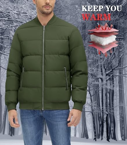 MAGNIVIT Mens Winter Bomber Jacket Quilted Full Zip Up Windproof Warm Coat Work Casual Athletic Jacket