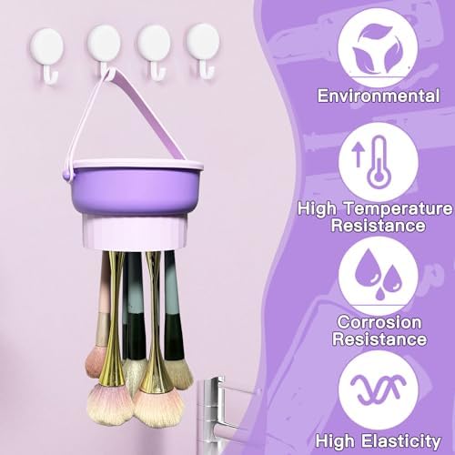 Makeup Brush Cleaner with Makeup Brush Holder, 2 in 1 Silicone Makeup Brush Cleaning Bowl, Makeup Brush Cleaner Mat Cosmetic Brush Washing Tool for Makeup Brush, Sponge, Powder Puff (Purple)