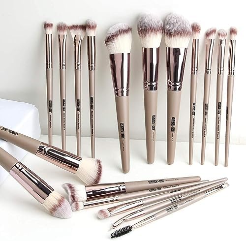 Makeup Brushes, 18 Pcs Professional Premium Synthetic Makeup Brush Set with Case, Foundation Kabuki Eye Travel Make up Brushes sets (Champagne Gold)