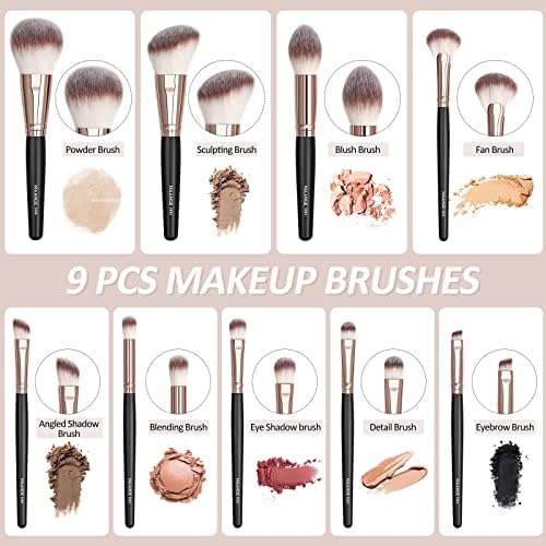 Makeup Brushes, MAANGE 9 Pcs Travel Makeup Brush Set Premium Synthetic Eyeshadow Blush Face Powder Blending Professional Make up Brushes with Makeup Sponge and Brush Cleaner