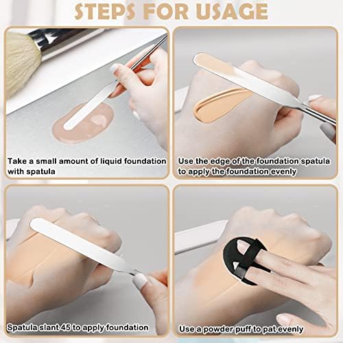 【Wide Application】This make up spatula tool set is versatile, you can use the makeup mixing palette to mix foundation, lipstick, lip gloss, eye shadow, mascara, contouring foundation, sunscreen, face cream, lotion, and more, this foundation spatula set will be your ideal beauty makeup tool; besides, the makeup mixing tray can also be used for nail art DIY projects, suitable for both professionals and non-professionals.