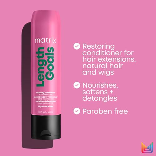 Matrix Shampoo and Conditioner Set For Extensions, Length Goals Softens & Nourishes Hair, Paraben Free, Detangling, For Natural Hair, Hair Extensions & Wigs, 2x300ml (Packaging May Vary)