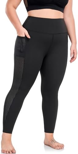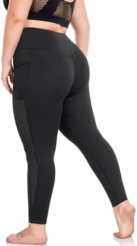 MEJING Plus Size Workout Leggings for Women with Pockets Stretchy, L-5XL Tummy Control High Waist Mesh Yoga Pants